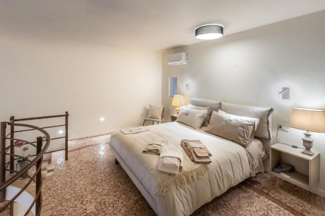 La suite si sviluppa su due livelli. Al primo piano si trovano una cucina completamente attrezzata, un pratico locale lavanderia e un bagno di servizio. Salendo al secondo piano, si accede alla camera padronale: un ambiente accogliente e raffinato, con letto king size, biancheria di alta qualità e un bagno privato dotato di ogni comfort, incluso un set di prodotti di bellezza selezionati. Completano i servizi una TV a schermo piatto, connessione Wi-Fi gratuita e autoclave per garantire il massimo comfort.
